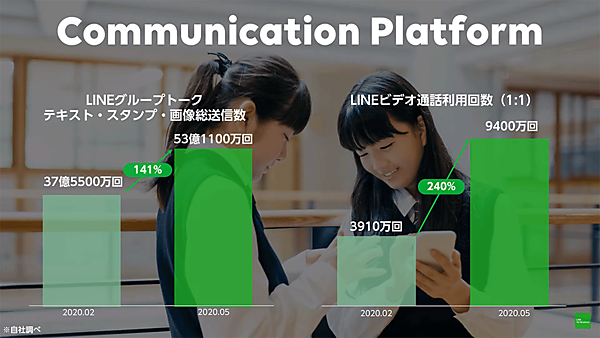 LINEが2020年6月に発表したユーザー調査では、メッセージの送信数やビデオ通話利用回数が増加。LINE上でのコミュニケーションが活発になっているという。