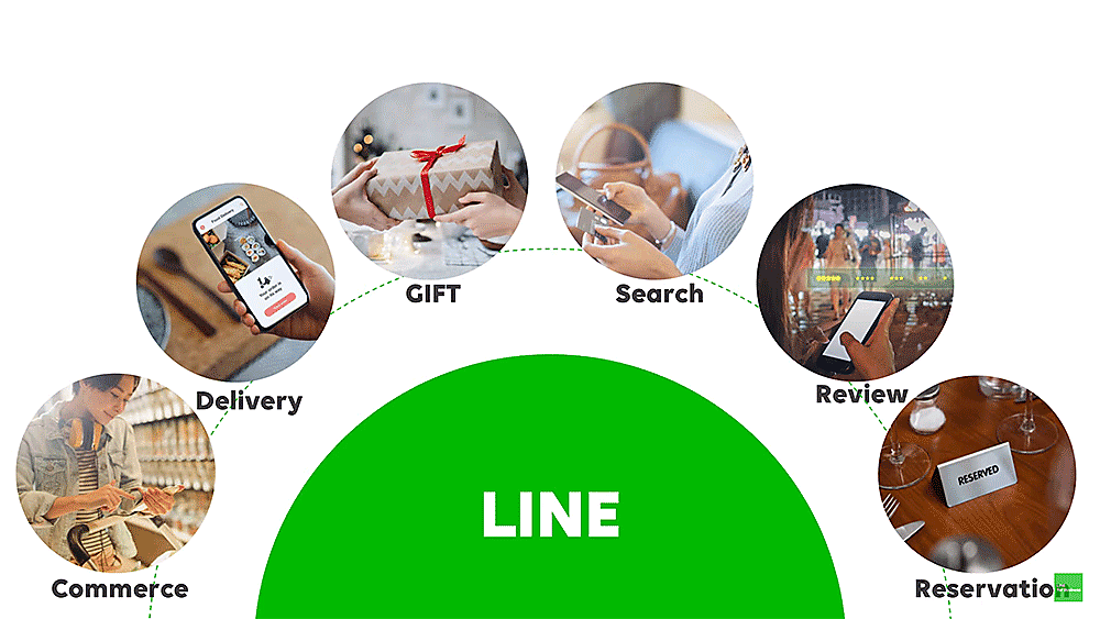 具体的には従来のコミュニケーションに加えて、予約、検索、コマース機能などの強化を予定している。