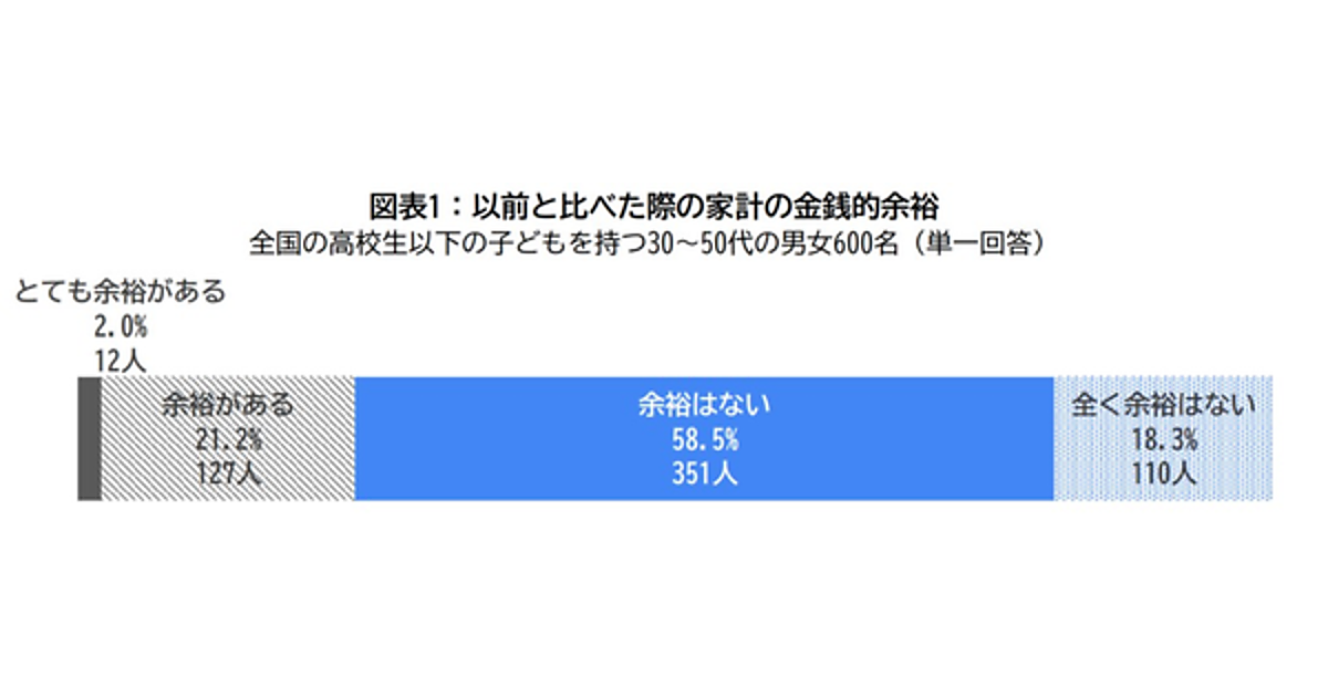 エデンレッドジャパンは、「コロナ共存時代における家計と生活支援に関する調査」の結果を発表した。昨年10月の消費税増税に続き、今年2月から流行している新型コロナウイルス感染症により、負担が増加している子持ち世帯を対象とするもので、高校生以下の子どもを持つ男女600名が回答している。