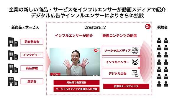 CreatorsTVは、ソーシャルメディアのマーケティングソリューションの一環となる。企業、自治体、団体などによるオンラインを利用したコミュニケーションが盛んになり、報道関係者だけでなく一般向けに公開する発表会も増加。ソーシャルメディアを中心に情報を収集する層が増えるなどメディア接触の変化を背景にする。