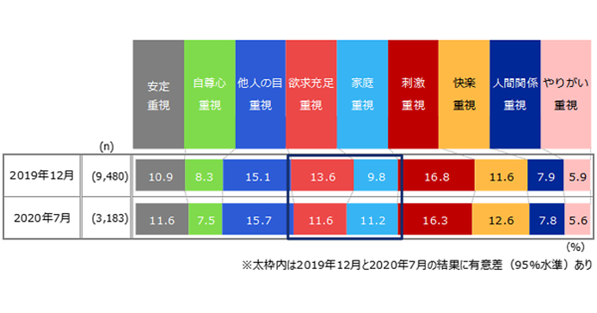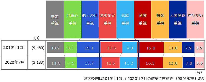 新型コロナウイルス拡大以前と比べ、“家庭を重視する層”が増加