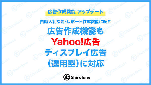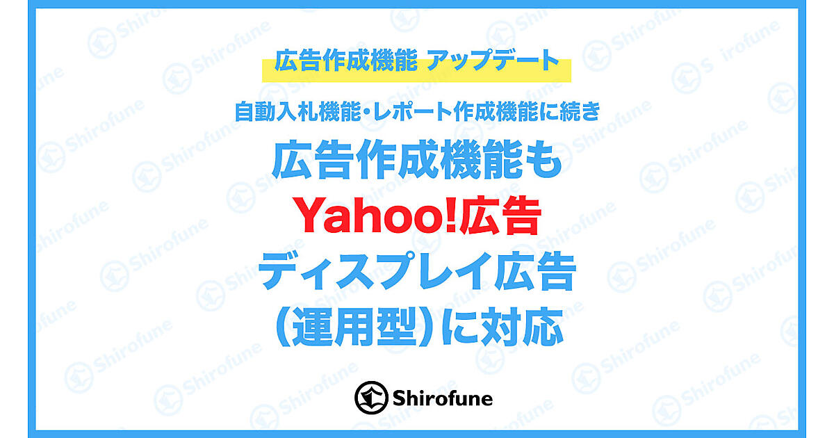 広告運用自動化ツールを展開するShirofuneは、クラウド広告運用ツール「Shirofune(シロフネ)」の広告作成機能を「Yahoo!ディスプレイアドネットワーク(YDN)」形式から「Yahoo!広告 ディスプレイ広告(運用型)」形式に変更した、と9月14日に発表した。Shirofuneの自動入札機能やレポート作成機能は既に対応を完了している。