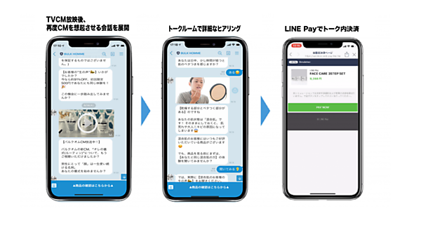 ジールスは、CM放映後で最もユーザーが反応しやすい時間を算出し、CM動画やコンテンツを組み込んでCMの訴求内容とプッシュを連動した新しい顧客体験を実現。広告施策の相乗効果でパフォーマンス向上に成功した。キャッシュレス決済サービス「LINE Pay」と連携してチャットで購買が完結するので、購買率のさらなる向上も期待できる。