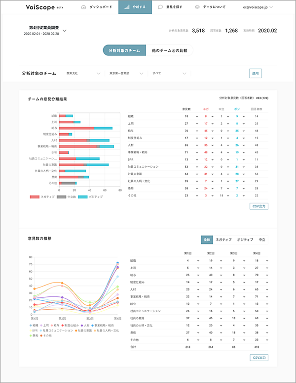 電通は、企業が実施する従業員調査の自由回答をAI(人工知能)で瞬時に分析し、多角的な視点から課題を可視化するダッシュボードサービス「VoiScope(ボイスコープ)」を開発した、と9月23日発表した。自社の状態が素早く広範囲に分かり、従業員の自発的な会社への貢献意欲(エンゲージメント)を高めるための課題発見と解決策の策定が高速化できる。