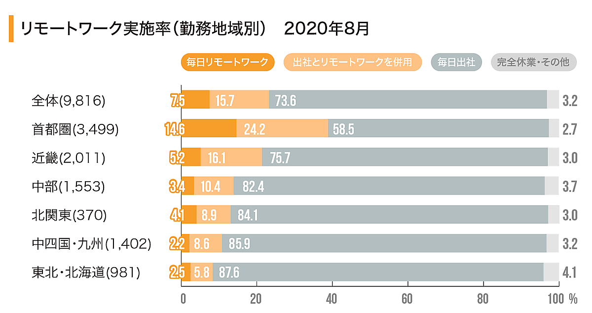 「毎日リモートワーク」は7.5%まで減少、「毎日出社」は7割超まで復活。