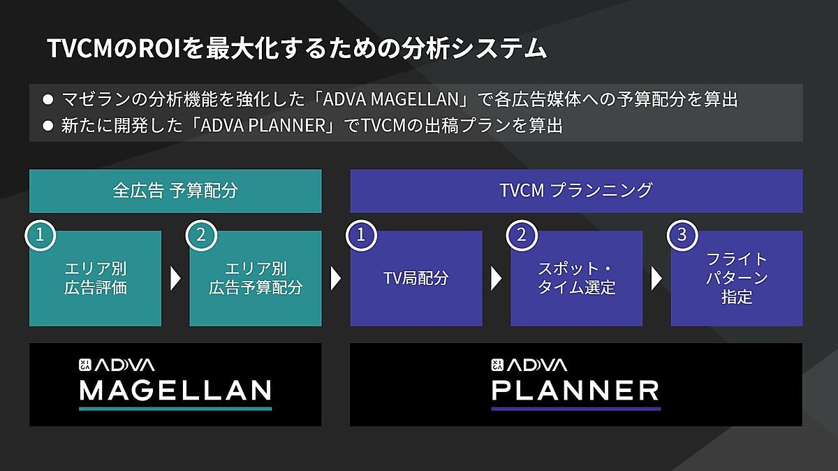 従来の出稿ボリュームに応じたマージンではなく、事業成果を対象にした成果報酬を実現。「どれだけCMを放映するか」ではなく「どれだけ商品やサービスが売れるか」を約束する。2016年から提供する広告効果分析ツール「XICA magellan(サイカマゼラン)」=「ADVA MAGELLAN」に改称=で培った知見や技術をCM出稿プロセスに実装した。