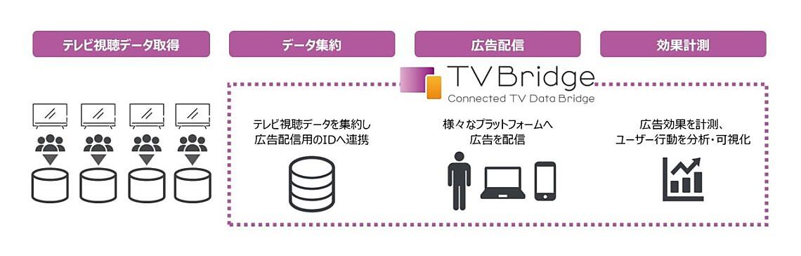 TVBridge Adsによる広告配信では、DSP(広告主向け広告配信プラットフォーム)の「Logicad」で培った運用実績を活用。視聴データから興味対象を判別し、商材の特性に応じて広告配信する。マーケティングAI(人工知能)プラットフォーム「VALIS-Cockpit」と連携した検証などマーケティングのPDCA(計画・実行・評価・改善)サイクルも行う。