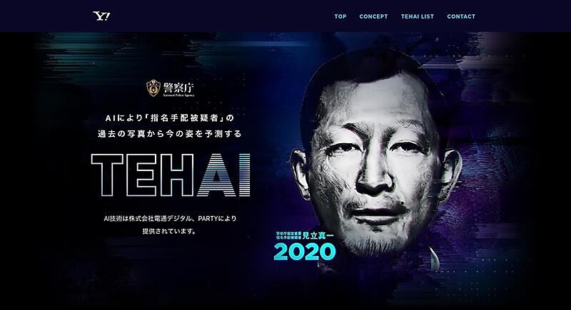 ヤフーと、電通グループでデジタルマーケティング事業の電通デジタル、広告クリエイティブ集団のPARTY(パーティー)は、警察庁が指定する重要指名手配容疑者の過去の写真からAI(人工知能)で今の姿を予測するプロジェクト「TEHAI(てはい)」の特設サイトを9月30日に公開した。重要指名手配容疑者の認知拡大と情報提供を呼びかける。