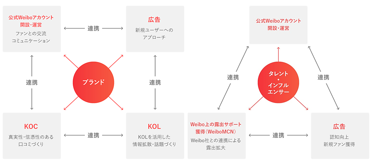 アライドアーキテクツはWeibo広告の指定代理権と、複数インフルエンサーと提携するWeiboMCN(マルチチャンネルネットワーク)の両方を保有する企業になった。中国で購買行動に影響力のあるインフルエンサー「KOL」によるWeibo公式のKOL広告配信プラットフォーム「WEIQ」総代理権もあり、Weiboで総合的なマーケティング支援を展開する。