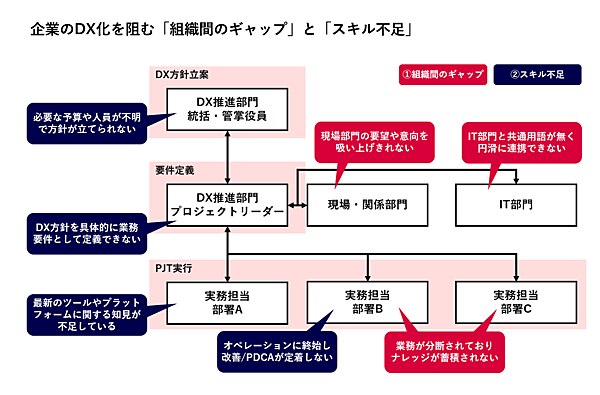 Webサイト制作・デジタルマーケティング支援のメンバーズは、大手企業でDX(デジタル技術による業務変革)推進に必要な人材や配置すべきポジションを可視化する「DX人材診断」の提供を始めた、と10月12日に発表した。企業のDXを阻む課題を抽出し、DXを成功に導く体制・スキル要件、必要人材リスト一覧など提示する。