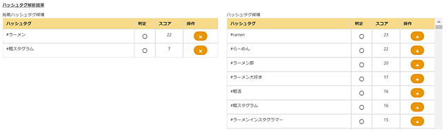 競合アカウントを入力すると、参考になるエンゲージメント(関係・信頼性)が高まりやすい投稿を提案する。投稿のベースとなるハッシュタグを1~5個指定するとリーチが高まりやすい候補が自動提案され、その中から最適なハッシュタグ30個を選定できる。最もエンゲージメントが高まりやすいと想定される曜日と時間帯も複数自動で提案する。