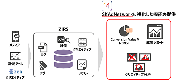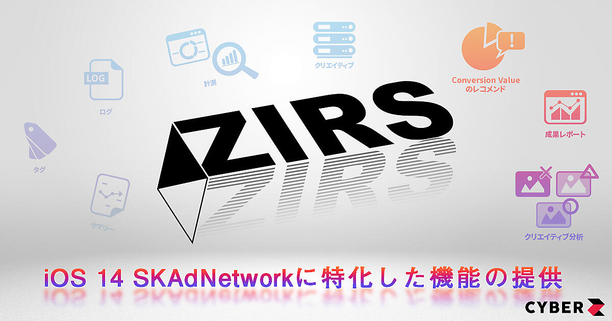 AppleはiOS 14でプライバシー保護を強化するためSKAdNetworkを導入した。広告主はユーザーを特定できないかたちで広告効果を計測できるが、従来の粒度(データの細かさ)で計測や運用できない。このためCyberZは独自のレポーティングシステム「ZIRS」でこれまでの広告運用に可能な限り近づけた運用ができるようSKAdNetworkに対応した。
