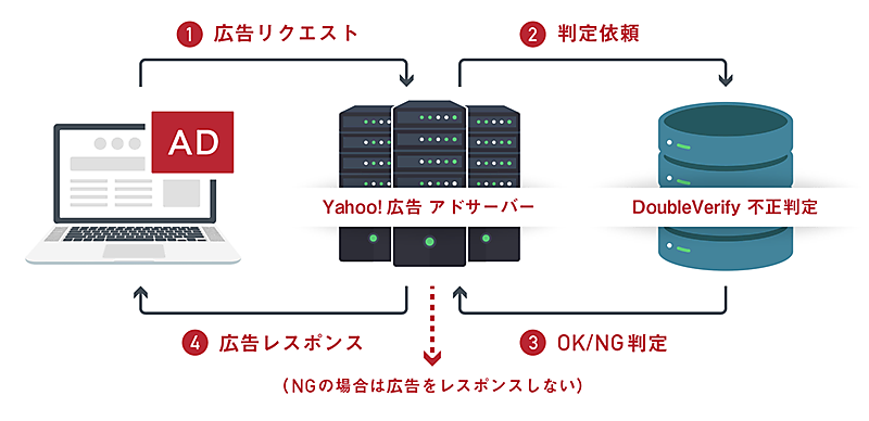 ヤフーはアドフラウドに対してこれまで独自の対策を行ってきたが、Yahoo!広告の安全性をさらに向上させるため、グローバル水準の解析力を持つDoubleVerifyのリアルタイムのアドフラウド解析とブランドセーフティ判定テクノロジーを広告プラットフォーム全体に標準装備する。広告主は特別な手続きは不要で、広告料金や機能利用費の追加はない。