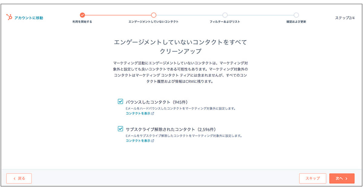 そのため今回、マーケティング活動の対象にするコンタクトをマーケティングコンタクトとして設定可能にし、価格設計が情報の一元管理を妨げにないようにした。メールの配信エラーがあったり、メールマガジンの購読をやめたりしたコンタクトを識別して提案。これらを活動の対象外に登録することで課金対象から除外できる。
