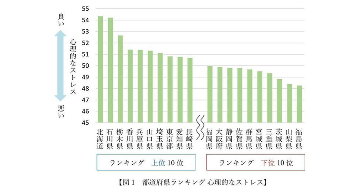 心理的なストレスに対してベストは「北海道」、身体的な不調は「石川県」。一方ワーストは……