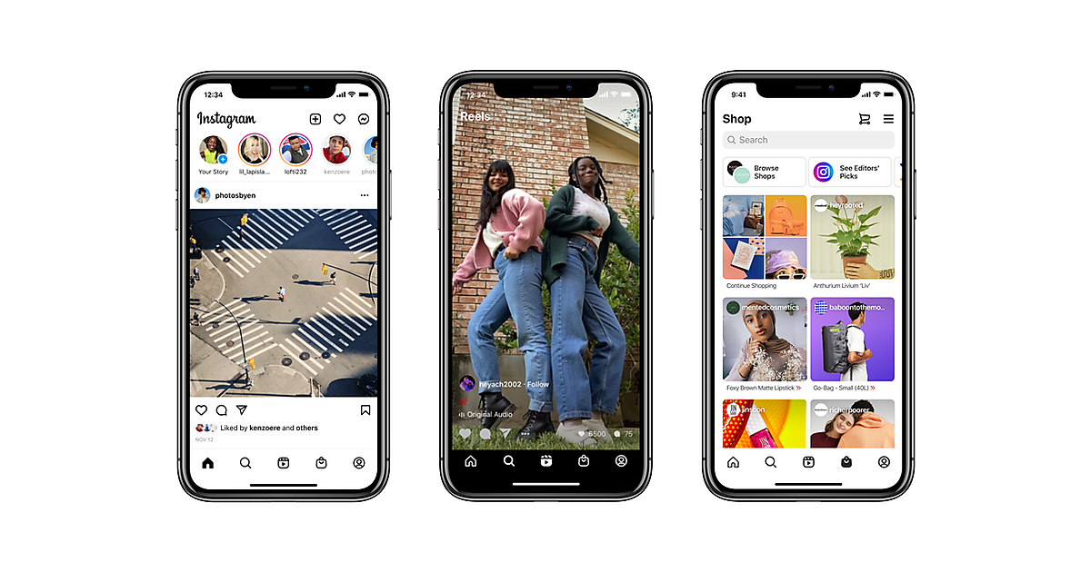 リールのタブをタップすると世界中のクリエイターが投稿したエンターテインメント性の高いリール動画を楽しむことができる。Instagramショップではショッピング機能を使っている投稿やブランドが利用者ごとにパーソナライズされて表示され、利用者はアプリ内で様々なビジネスやブランド、商品に出会うことができる。
