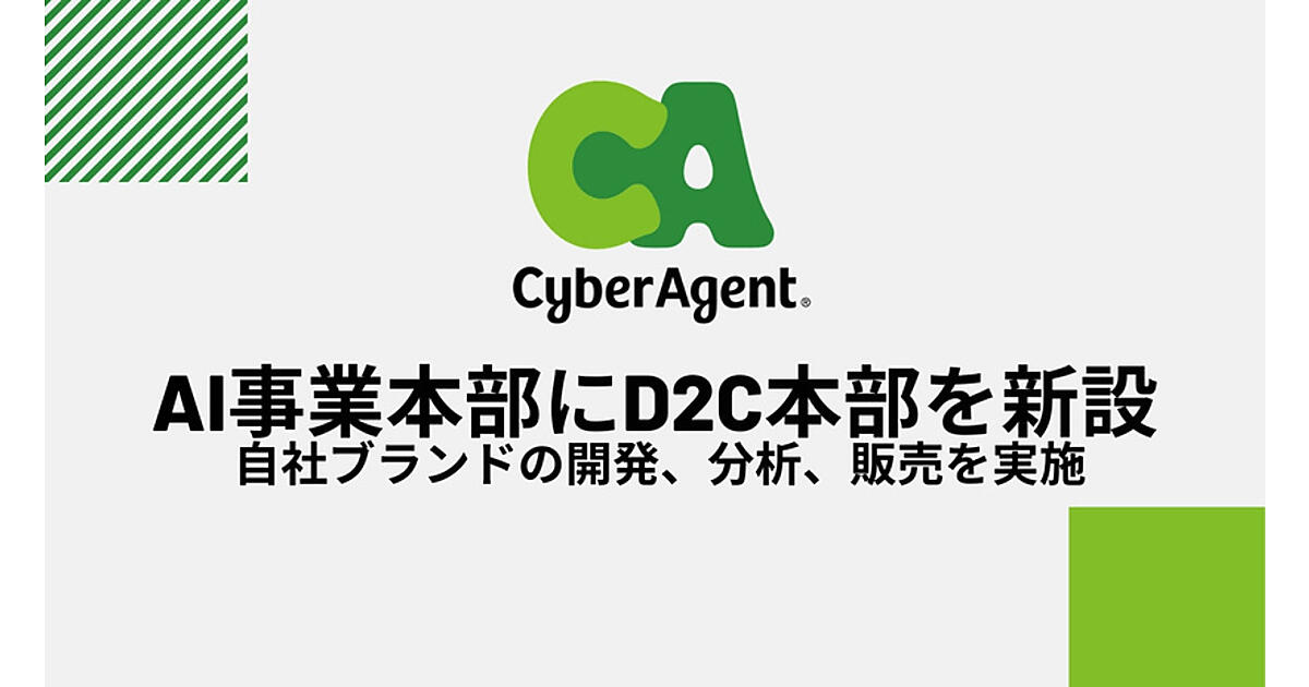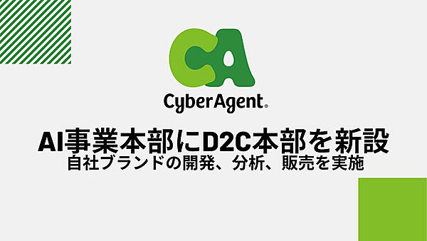 インターネット広告事業のサイバーエージェントは、同社のAI(人工知能)事業本部にD2C(ダイレクトツーコンシューマ)本部を11月16日に新設した、と同日発表した。消費者にとってD2Cでのショッピングが一般的になり、市場拡大が見込まれることから、同社が持つAIやデータサイエンスなどの技術を活用してD2Cの新事業を開発する。