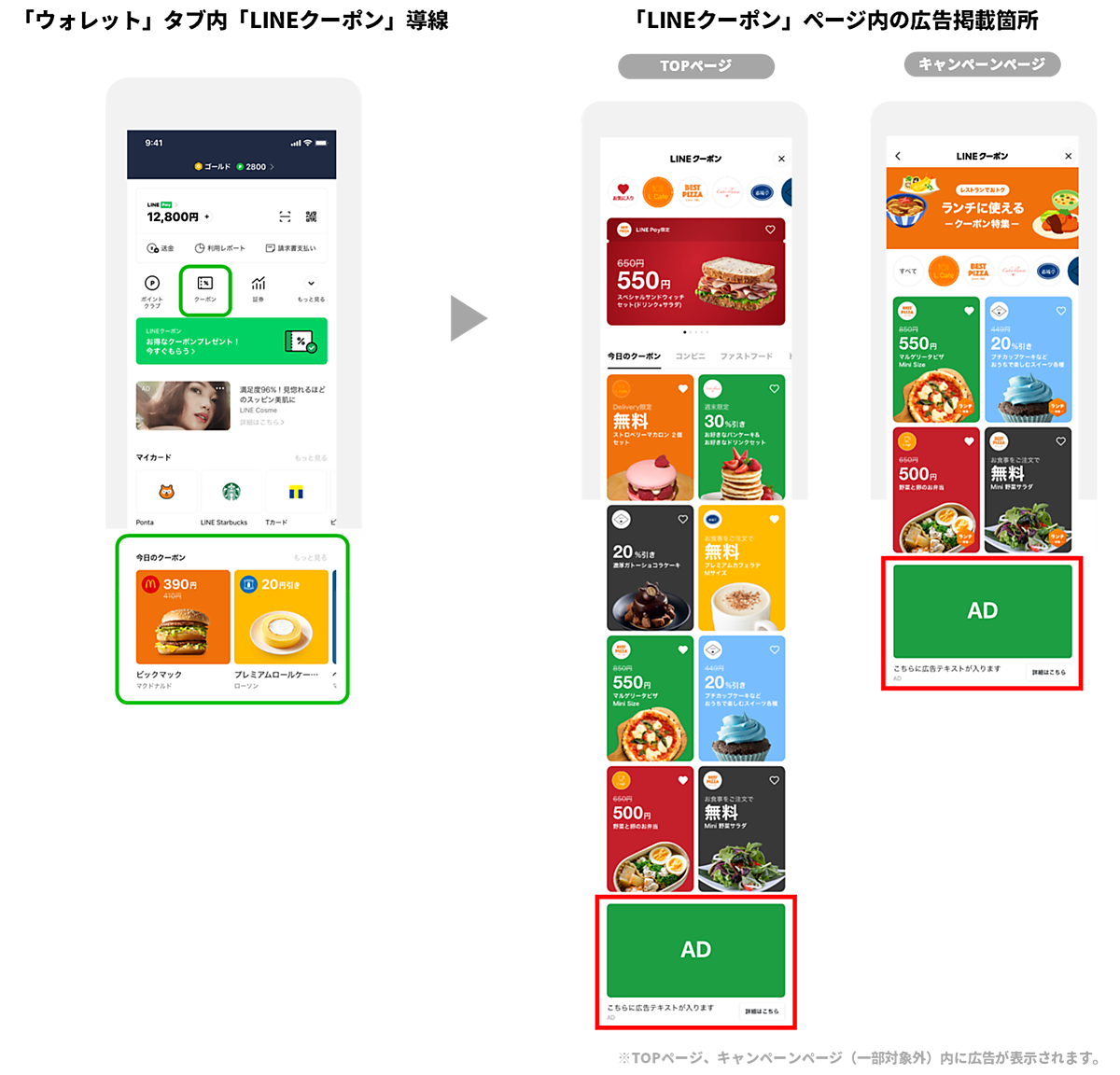 LINEは、同社が運営するコミュニケーションアプリ「LINE」とその関連サービスを対象にした運用型広告配信プラットフォーム「LINE広告」で、クーポンサービス「LINEクーポン」を広告配信面に加えた、と11月19日発表した。企業はクーポン情報を求める層にアプローチできる。LINEクーポンには、2800万人を超えるユーザーが登録している。