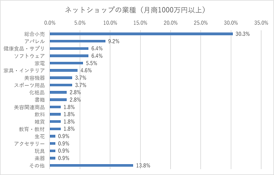 ネットショップは「総合小売」が圧倒的多数派、月商によってさらに総合的に