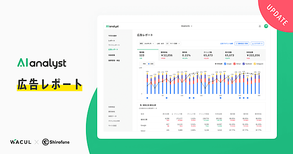 AI(人工知能)によるマーケティングツール開発のWACUL(ワカル)は、広告運用ツール開発・販売のShirofune(シロフネ)と業務提携した、と11月26日に発表した。WACULが提供しているデジタルマーケティングのPDCA(計画・実行・評価・改善)ツール「AIアナリスト」と広告運用自動化ツール「Shirofune」のレポート機能がシステム連携する。