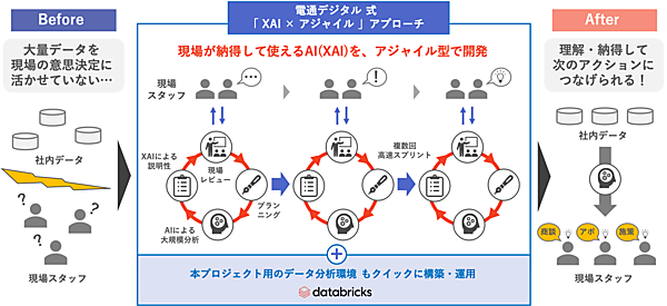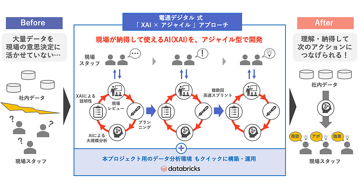 電通グループでデジタルマーケティング事業の電通デジタルは、企業顧客の購買、解約などの行動の予測モデルを「説明可能なAI(人工知能)=explainable AI(XAI)」を使ってアジャイル型開発で支援するコンサルティングサービスを始める、と12月4日発表した。予測モデルを活用する営業担当者は分析結果に納得したうえで確実な営業活動ができる。