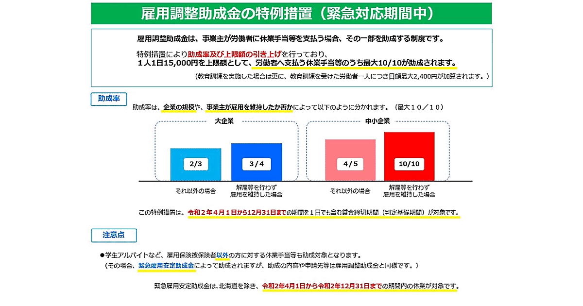 雇用調整助成金の特例措置