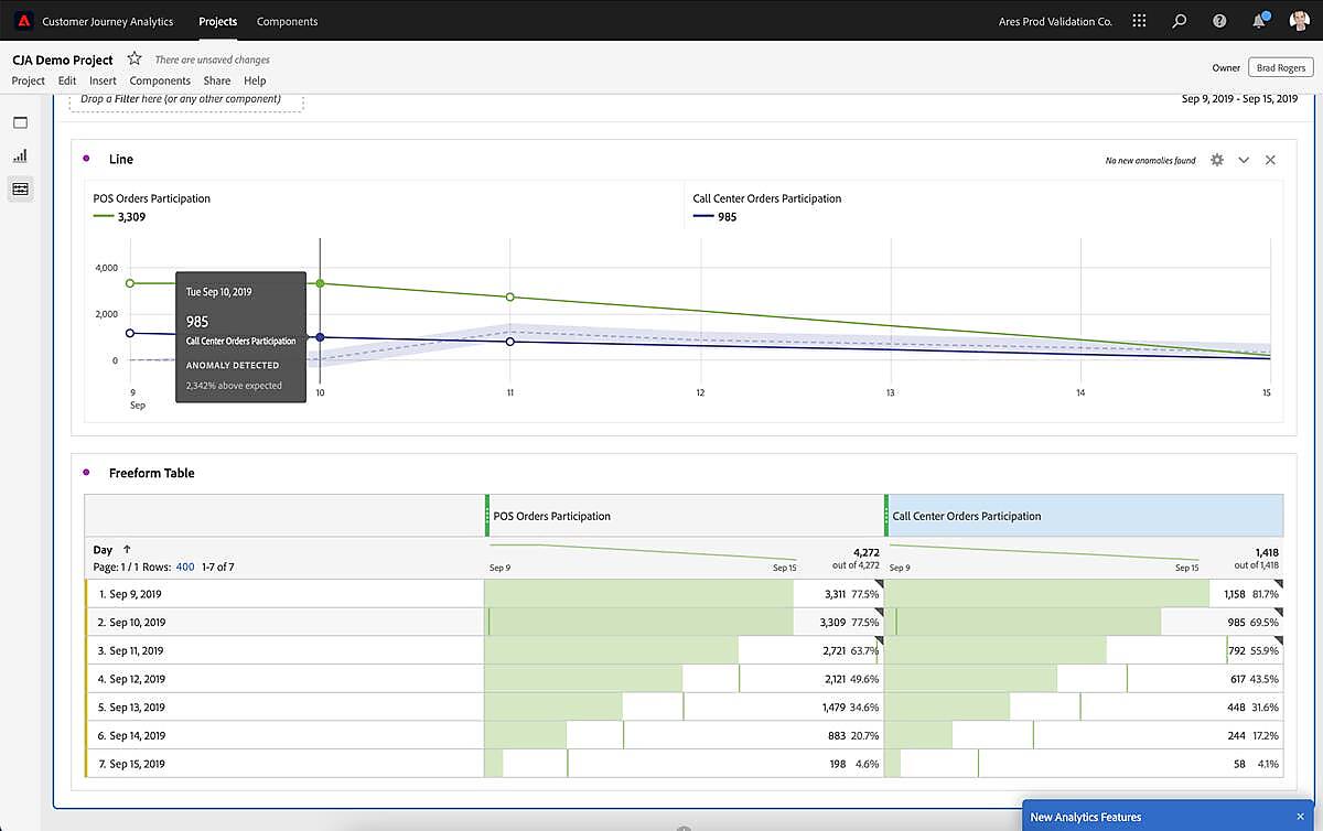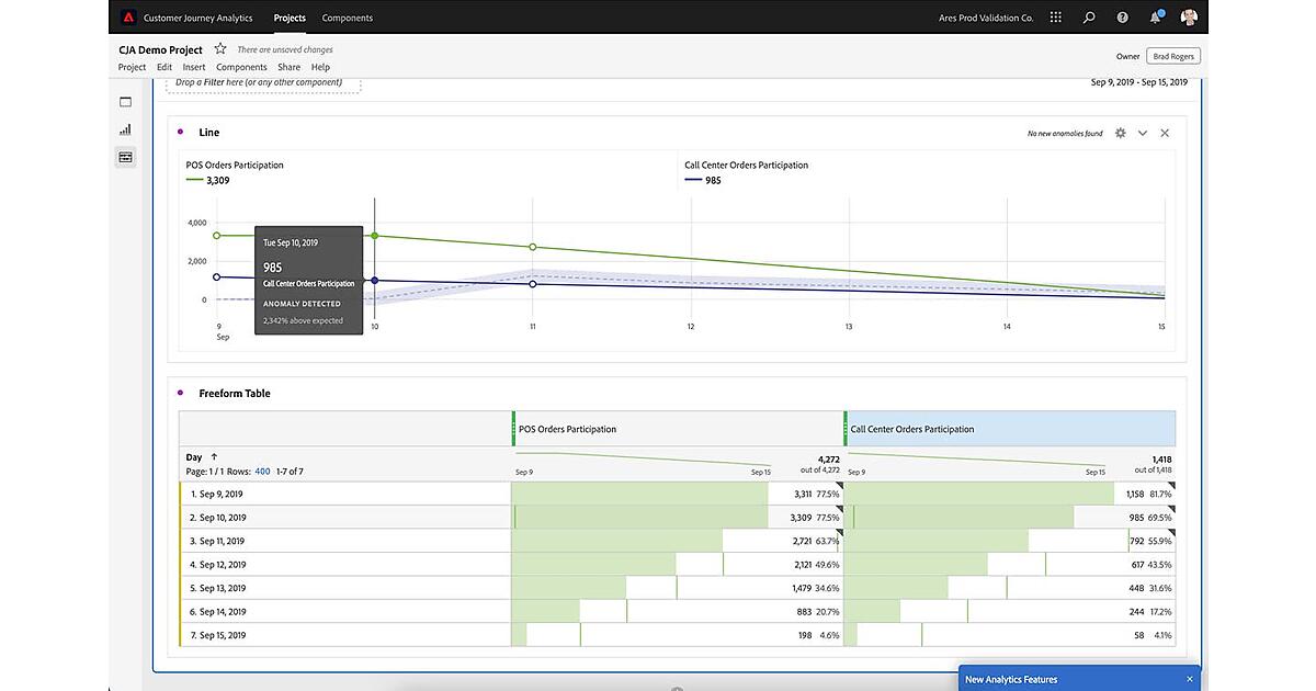 売上を促進したり阻害したりしているWebサイトの領域を見つけ、リアルタイムのキャンペーン展開や修正に活用されてきたAdobe Analyticsの「異常値検出」を、カスタマージャーニー分析にも12月9日から提供を始めた。この機能でカスタマーサポートなどのチャネルとモバイルアプリ相互のイベントの因果関係が初めて理解できるようになり、AIが問題点を改善する領域を特定する。