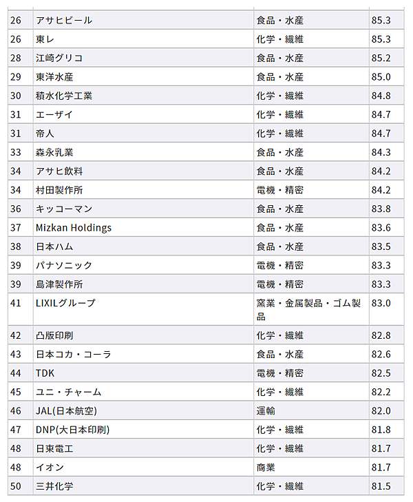 それによると、CCサイト指数ランキング(総合ランキング)1位は「サントリー」105.2ポイント(前年1位)で、今年は唯一の100ポイント超え。以下、2位「トヨタ自動車」97.8ポイント(前年19位)、3位「資生堂」96.3ポイント(前年7位)となった。コロナの影響を受け、食品・水産や化学・繊維といった業種に属する企業が上位に躍進している。