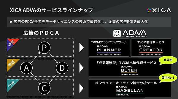 定量的な効果測定が難しいテレビCMの改善点を特定する。同社のマーケティング最適化ソリューション「XICA ADVA」シリーズの新サービスで、独自開発の分析手法を実装した。「女性の著名人を起用することで購買意欲の向上につながる」「CMの前半で商品名を提示することで認知の定着につながる」のように細かな改善点が分かる。
