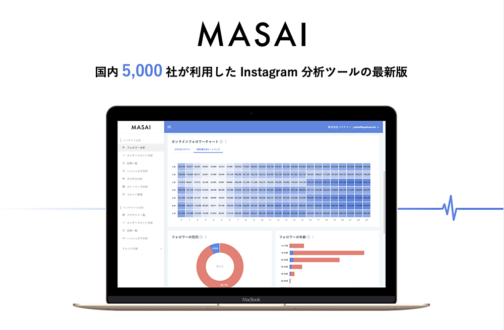 MASAIはファンとのコミュニケーションを可視化して、Instagramアカウント成長を支援する分析ツール。Instagramアカウントの運営に力を入れる企業が増えているが、分析時間がなく運用に苦労する企業が多いため、手軽に診断できる無料サービスを提供する。