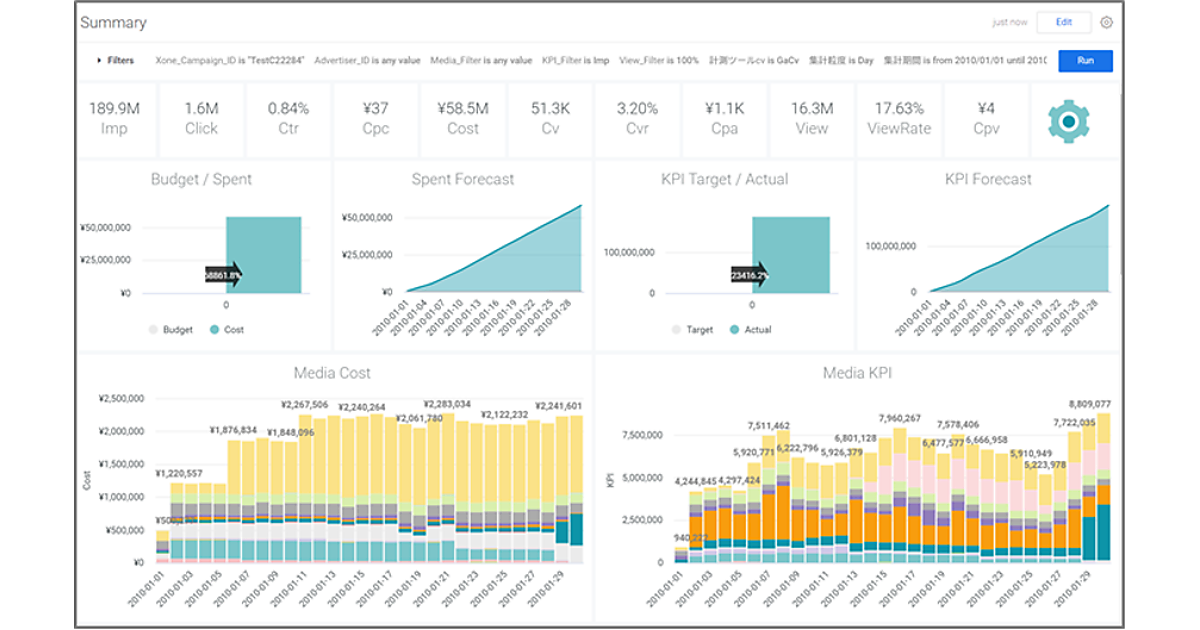広告メディアビジネスの次世代型モデル「AaaS(Advertising as a Service)」を提唱する同社は、広告主の事業成長に貢献する「博報堂DY次世代メディアソリューションズ」を提供している。ダッシュボードはそのソリューション群の一つで、テレビとデジタルの統合運用によってデジタル広告施策の効果を最大化し、広告主の事業KGI(重要目標達成指標)/KPI(重要業績評価指標)を達成する施策を継続的に繰り返すことができる。