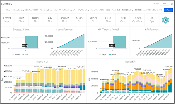 ダッシュボードは、汎用性が高い基本設定を済ませてある。「Google Cloud」のデータ分析ソリューションでBI(ビジネスインテリジェンス)ツールの「Looker」を採用し、高速なデータ探索と集計処理が可能だ。拡張性も高くカスタマイズしたダッシュボードも構築できる。効果測定ツールの導入では静止画や動画など多様化する広告形態の設定が負担のほか、短期間で効果を測定・分析して次の広告を設計・出稿し続ける課題があった。
