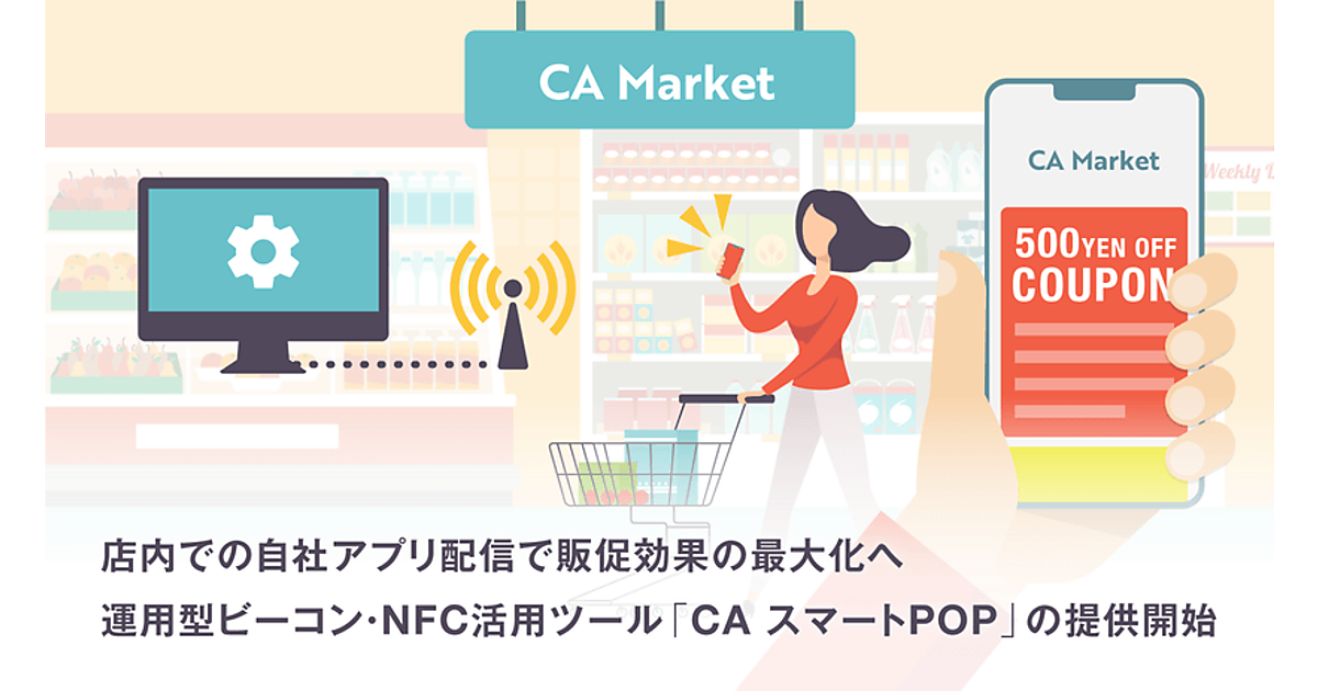 インターネット広告事業のサイバーエージェントは、店舗に設定したビーコン(電波受発信器)や近距離無線通信技術のNFCタグ、QRコードと連動して自社アプリにコンテンツを配信する運用型ビーコン・NFC活用ツール「CAスマートPOP(シーエースマートポップ)」の提供を始めた、と12月24日に発表した。来店客のスマートフォンにクーポンや来店特典を配信してキャンペーンや商品の認知、客単価向上を図る。店舗を保有する企業向け。