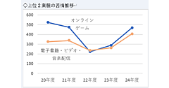 まず「ネットサービス・アプリ」業界では、3月の外出自粛以降リリースが増え、4月~6月は前年比1.5倍ペースまで復活した。これにともないこれまで少なかった「オンライン」のキーワード登録が急増した。