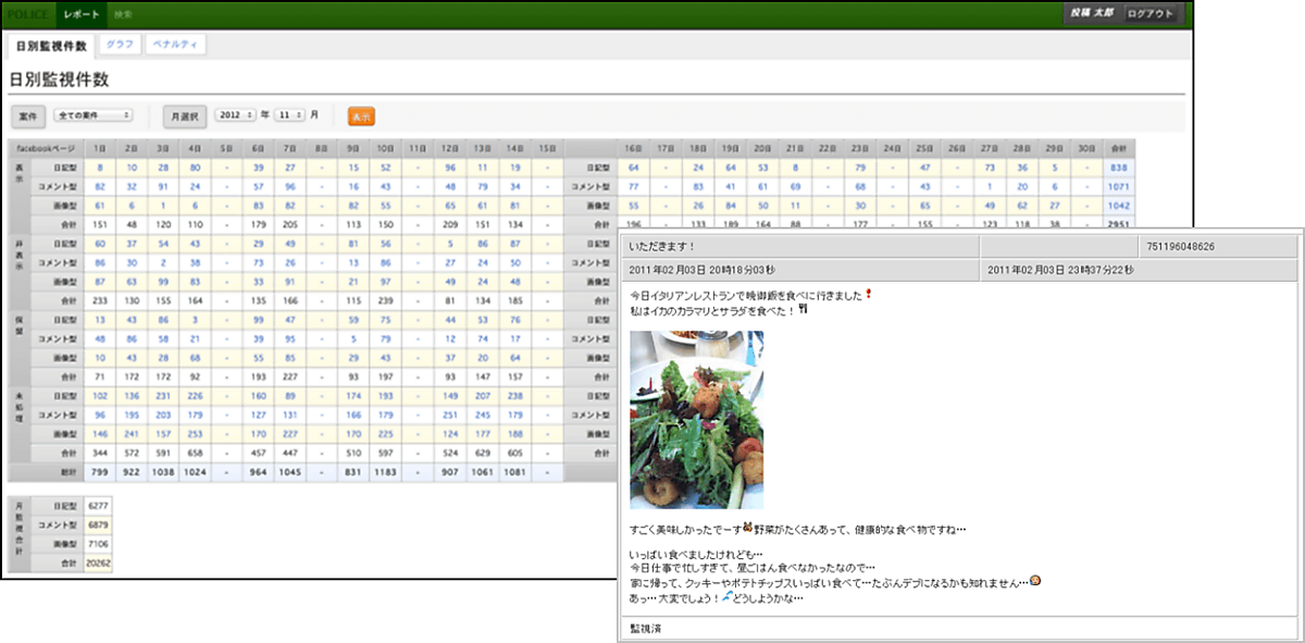 監視する言語は日本語▽英語▽中国語(簡体字、繁体字)▽韓国語。レポート画面では日別・月別の監視件数が表示され、表示や非表示にした件数や投稿内容などの監視状況がリアルタイムで把握できる。BranTechは炎上リスクの高い投稿にしぼって検知するので、少人数でSNS対応を迫られている広報部門は業務の圧迫から解放される。