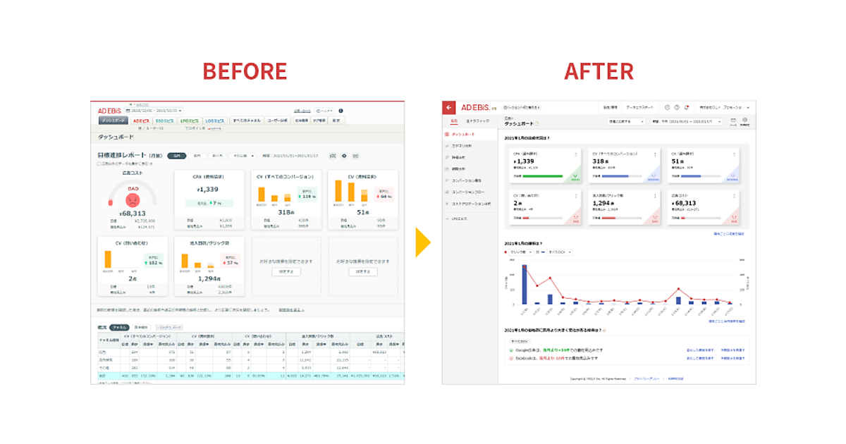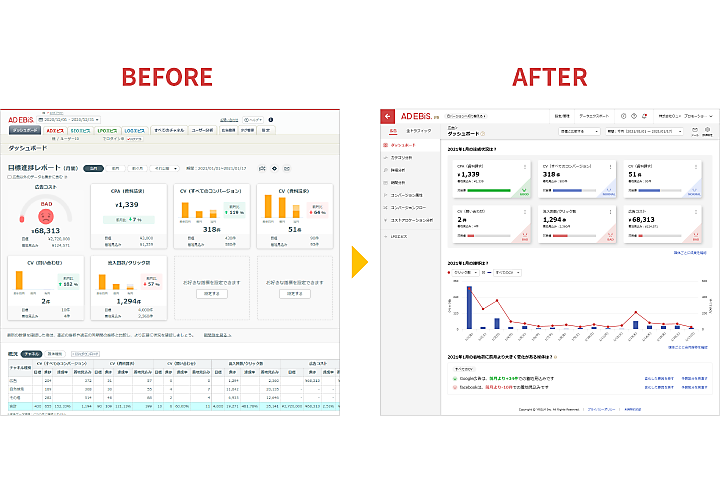 マーケティングロボット開発のイルグルムは、同社のマーケティング効果測定プラットフォーム「アドエビス」のUIを刷新した新バージョンを1月20日から提供を始めた、と21日発表した。集計処理の見直しで画面レスポンスは最大82%高速化した。画面構成も見直し、直感的な操作で主要指標の確認や施策の評価ができる。