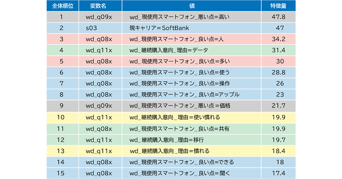 顧客を1人の人間として理解していく手法のN1分析や、人がどのようなものを買う・買わないか説明するジョブ理論で活用できる。ジョブ理論の分析では対象者の状況を知ることが必要になる。顧客の声や自由回答などの文章データは扱いが難しいが、KeyExplorerはテキストマイニングとデータマイニングを統合し、書かれた文章を定量的に分析する。