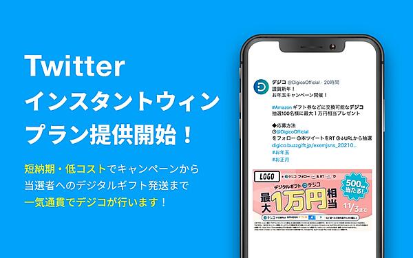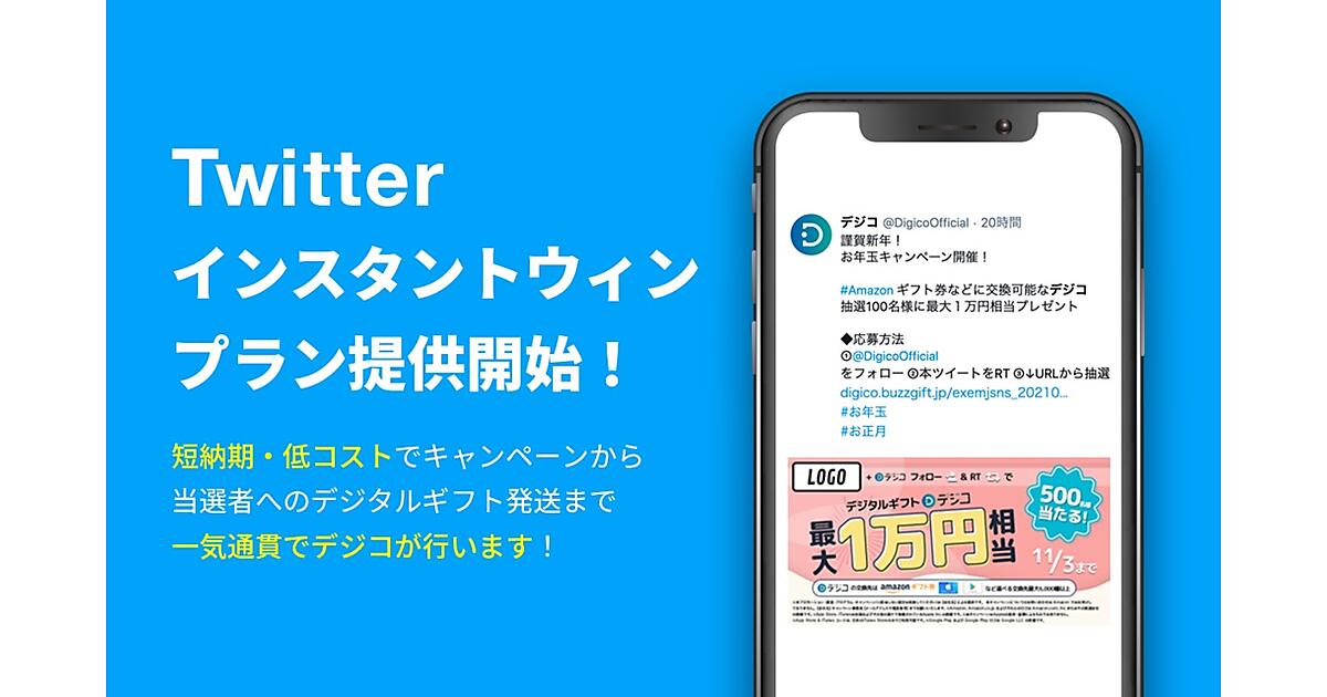 オンラインメディア・広告技術事業のCARTA HOLDINGSグループでマーケティングソリューション事業のVOYAGE MARKETINGは、同社が運営するデジタルギフト「デジコ」で、「Twitter」を使うプロモーションでのインスタントウィンプランの提供を1月に始めた、と1月28日発表した。Twitterでフォローやリツイートすると、その場で当選を判定する。