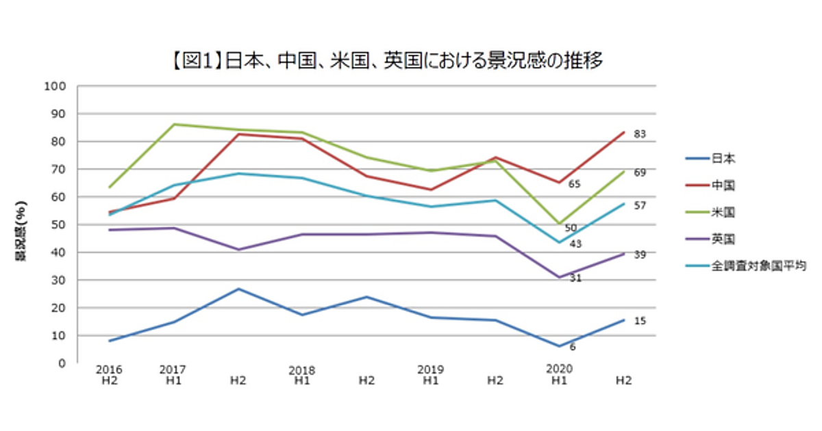 世界:日本の景況感は29か国中最下位。1位は中国