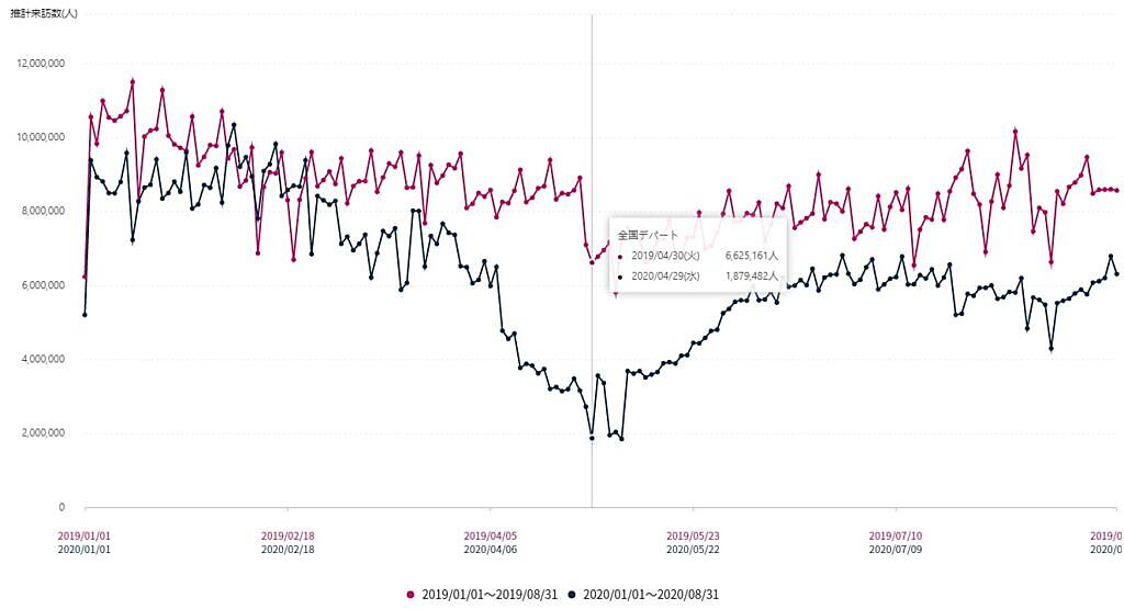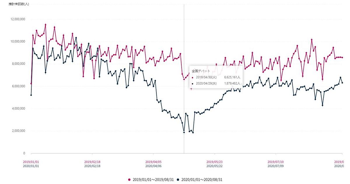 マーケティングの領域では、全国の店舗や拠点で人流を統合して、特定の業界や自社系列店舗のトレンド把握のような分析ができる。公共部門では、政府の新型コロナのパンデミック影響分析や自治体の防災避難計画などで、EBPM(Evidence-Based Policy Making=証拠に基づく政策立案=)に活用できる。