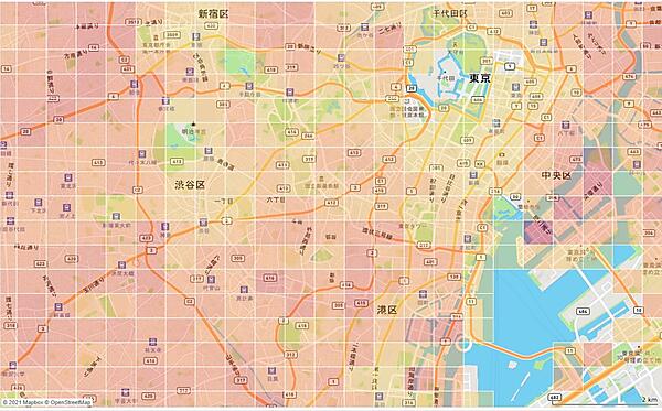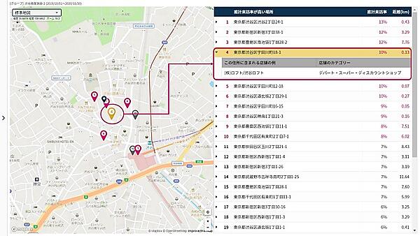 店舗別実勢商圏データでは、指定したエリアと期間内の「エリアの滞在人口・流入人口」をメッシュ(正方形に区切った区画)で提供する。「エリアの行動特性データ」「実勢商圏データ」のほか、過去の統計値だけでなく1週間先の「人流予測データ」も準備でき次第提供し、売上予測や需要予測などさまざまなシミュレーションができる。