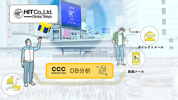 カルチュア・コンビニエンス・クラブ(CCC)グループでマーケティングソリューション事業のCCCマーケティングと、屋外広告専門広告会社のヒットは、屋外ビジョン広告の接触者へのダイレクトマーケティングで協業を始めた、と2月8日発表した。第1弾で東京・渋谷と大阪・道頓堀の屋外ビジョン接触者に向けたダイレクトメディアのパッケージを作り、提供する。