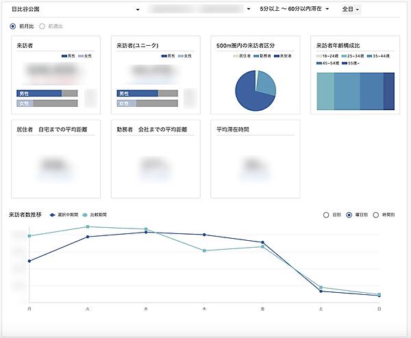 来店者数・属性▽来訪頻度▽来訪者区分▽他施設・地点回遊▽商圏▽交通量▽エリア--の各分析と、比較、レポートの機能を備える。直感的に操作できるユーザーインターフェイス(UI)が特徴で、データ分析の予備知識がなくても最新の人流データが可視化できる。dポイント加盟店に2020年12月から先行販売していたが、今回幅広く展開する。