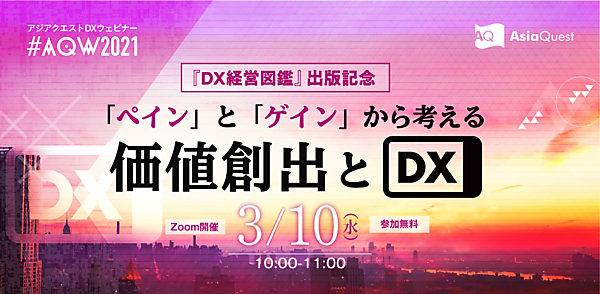 「DXは技術の話ではなく、価値創出のための物語」――DXをこうとらえ情報発信を続けているアジアクエストが、ユーザー(消費者)の「ペイン(苦痛)除去」と「ゲイン(利得)創出」につながるDXを解説するセミナーを3月10日(水)にオンラインで開催する。