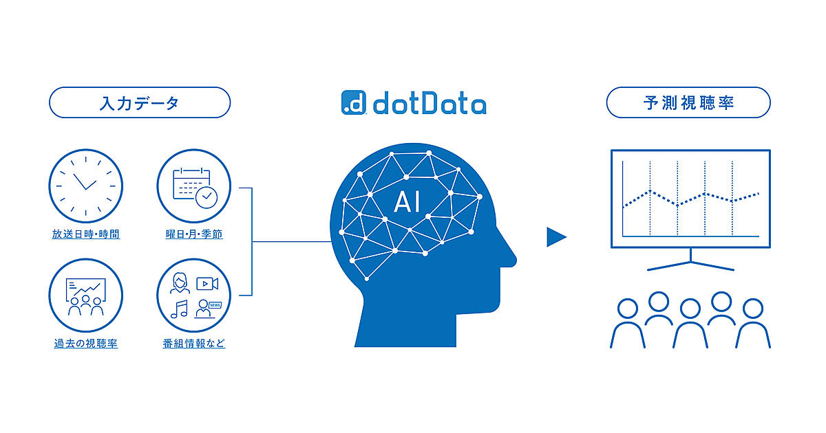 Spot-Navi AI版はdotDataと、NECの「データ管理基盤アジャイル構築サービス」を活用する。これによって、曜日、放送時間・時間帯、番組ジャンル、季節性や、その他のさまざまな要素を加味したより高度な視聴率予測を実現する。dotDataは、元NECの研究者が設立した機械学習自動化ソフト開発会社、dotDataのソフト。AIで予測分析プロセス全体が自動化できる。