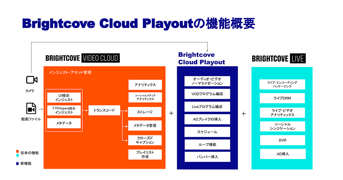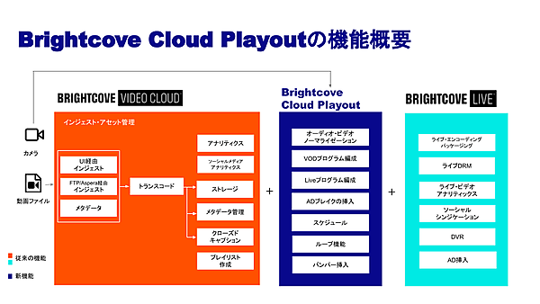 動画プラットフォームの米国ブライトコーブは、主力製品「Brightcove Video Cloud」の新機能「Brightcove Cloud Playout」の提供開始を2月9日に発表し、その日本語訳を3月14日に公開した。あらかじめ収録した動画やライブ動画を事前に編成してライブ配信できる。放送局や映像配信事業者、多くの動画コンテンツを所有する組織向け。