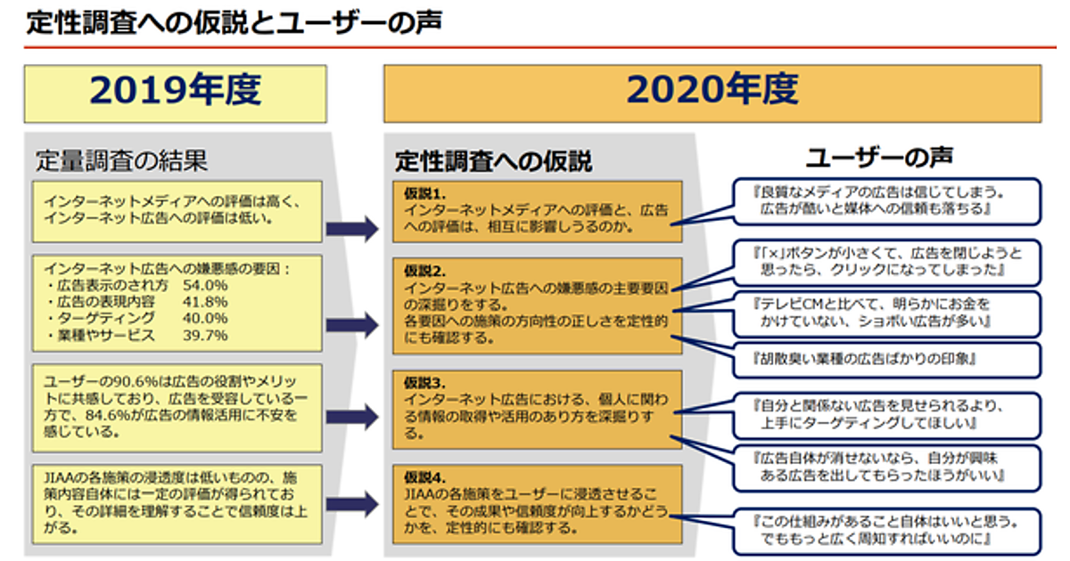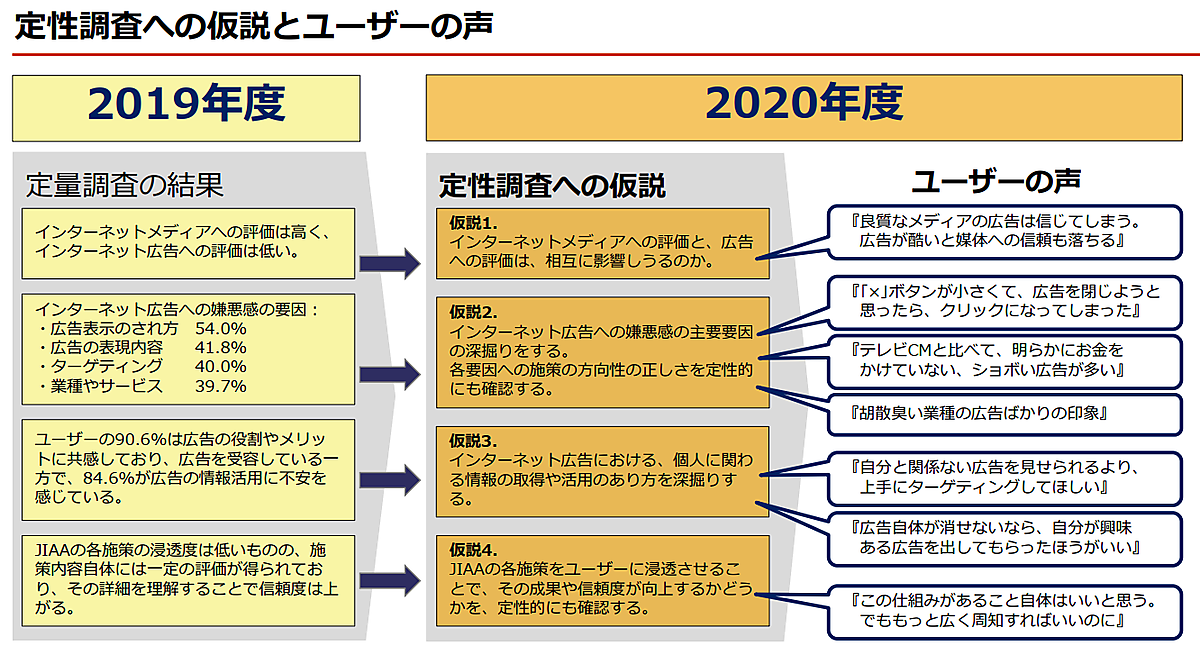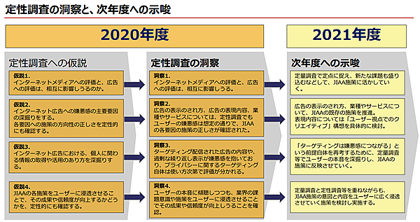 この結果を受け、JIAAではいくつかの仮説を立て、ユーザーに対するインタビュー調査(定性調査)を実施。ユーザーの声を踏まえたうえで、以下4つの結論を導き出している。