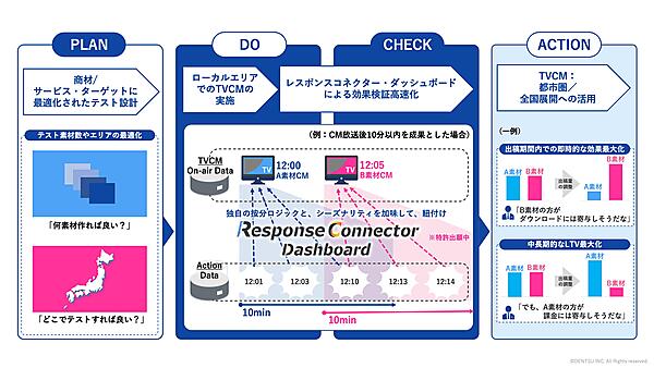 テレビCMの出稿目的を伝統的な「認知・ブランディング」から「獲得・コンバージョン」に設定する広告主が増えている。しかし、KPIに対する効果が見えにくいことが課題になっていた。レスポンスコネクター・ダッシュボードは、CM1本ずつに広告主が設定したKPI項目とひも付けることで、即時的な広告効果を可視化することができる。対象エリアは、すべての放送エリアに対応している。