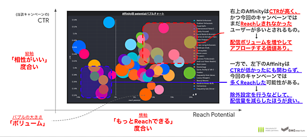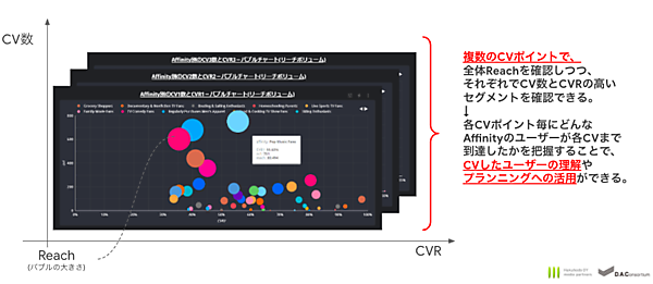 管理画面以上に深掘りできる「Targeting Potential」「View Trend」「Conversions」「Campaigns」「FQ Cut」「Reservation」の6つの多面的な分析の切り口もあり、それぞれ視覚化したUI(ユーザーインターフェース)で確認できる。博報堂DYメディアパートナーズは「AaaS(Advertising as a Service)」と名付けた次世代型の広告メディアビジネスモデルのソリューション群を展開中で、第四弾のAudience Diveは商標登録を出願中。