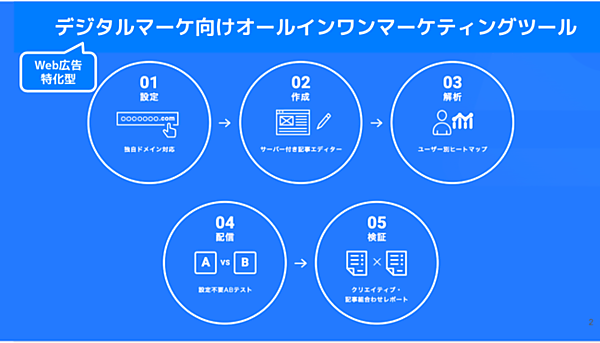Squad beyondは、デジタル広告の制作から改善までの各工程がワンストップで完結するプラットフォームで、LP・メディア制作、解析・最適化・レポート、コラボレーション、コンテンツの検閲・審査などの機能を備える。デジタル広告関連業務が一元化でき、クライアント、代理店、制作会社、運用者が同じシステム上で作業が可能。これまでに累計200社以上が導入したという。
